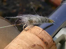 A fly tied for sea trout in the Baltic area. It proved to be efficient in other places too. Translucent and yet colored. Tie it in olive, rusty or tan and you can imitate any camouflaged mysis—and it will stand out from the crowd. Can be tied by seniors too...