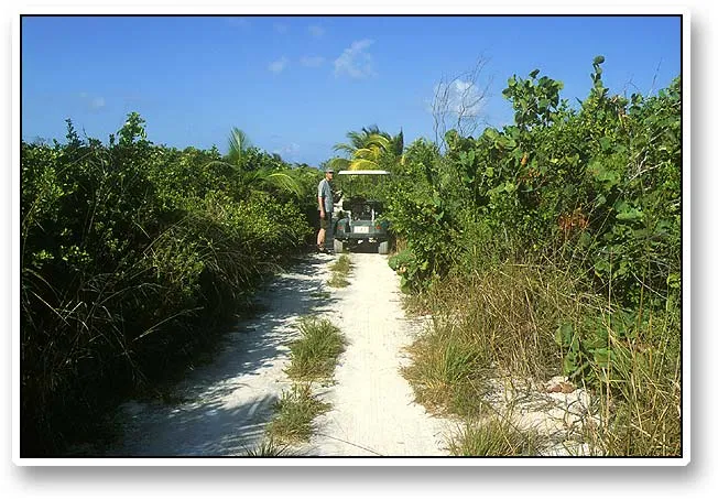 Renting a golf cart and going out on your own can be highly recommended. This is a typical road: small but doable dirt road. They often lead to secluded and rarely visited spots.