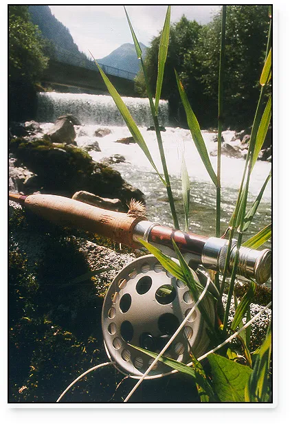 The CDC&Elk on my cane rod in front of a small Mittersil stream were it drew a couple of small browns from a deep pool just below the waterfall in the background.