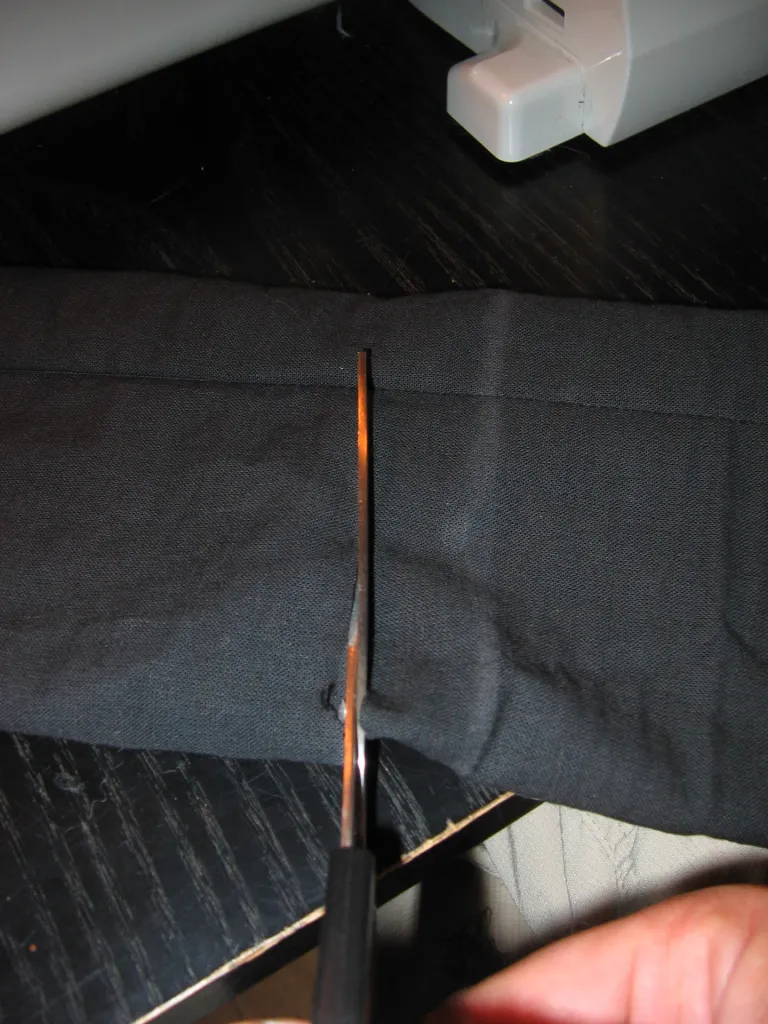 Cut the fabric tube at the zipper mark with a bit to spare for folding when sewing on the zipper.