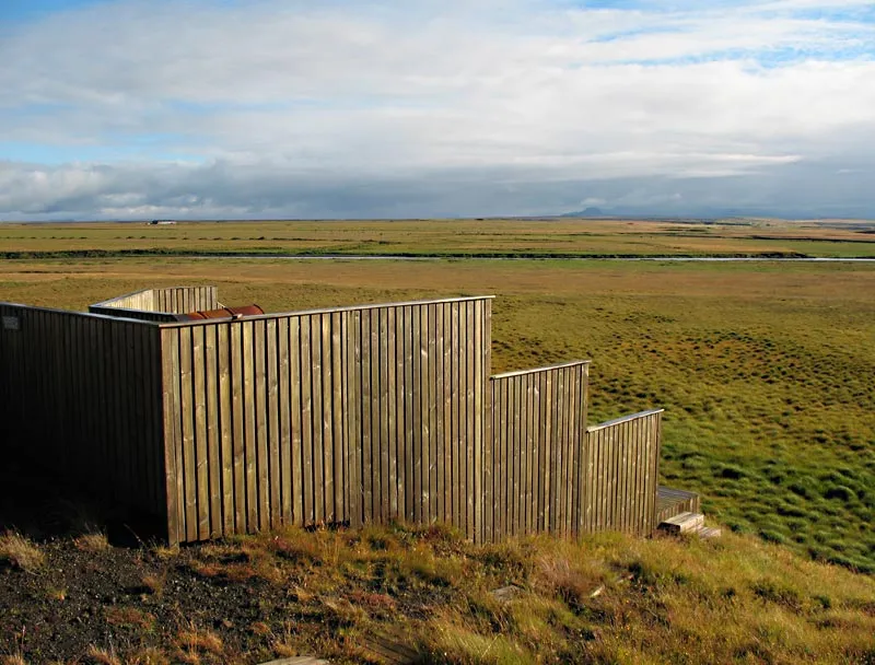Behind these wooden fences you will find the hot tubs of the East Rangá lodge. The view is magnificent -- down over the river.