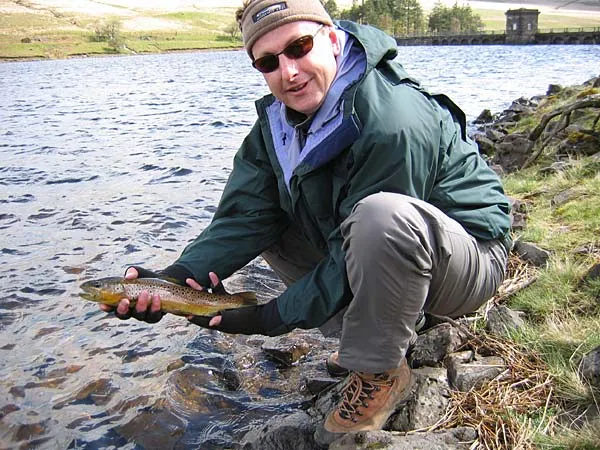 Paul Slaney with a beautiful brown trout from the small reservoir.