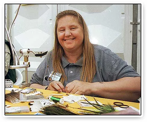 Linda Foote spent the Fly Fair tying tiny flies - sizes in the upper 20's and 30's.