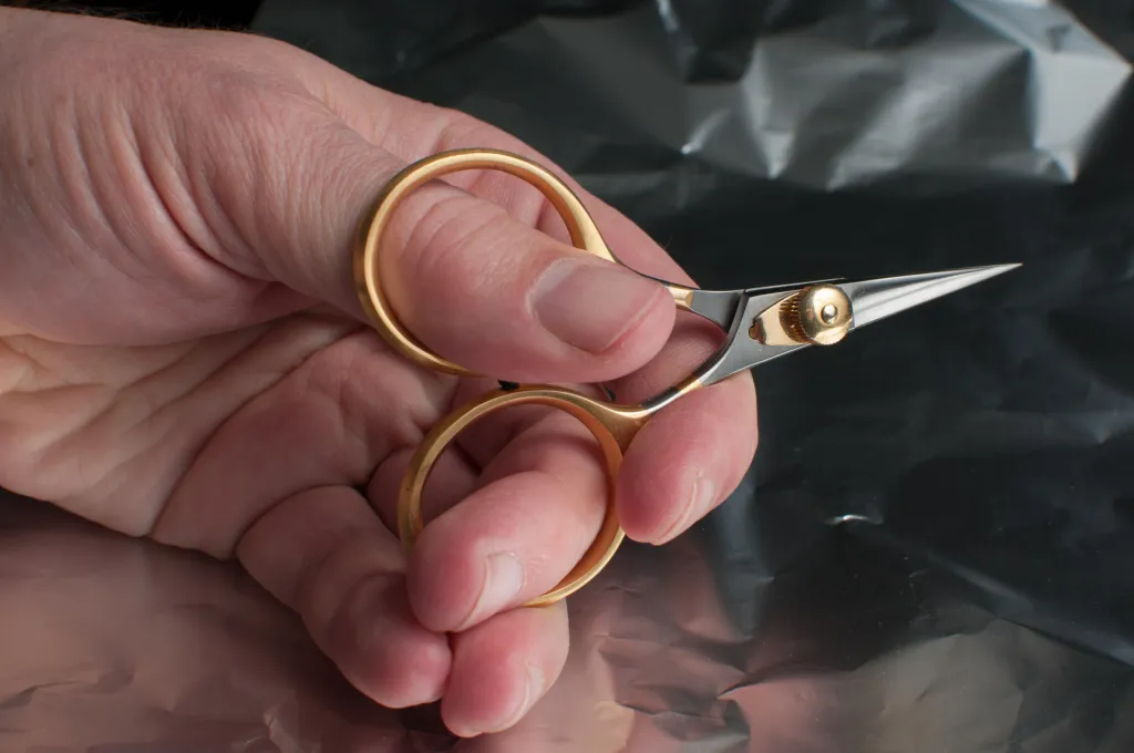 Here the middle finger is in the ring and the index finger supports. This allows you to use the thumb and index finger to grab materials without letting go of the scissors