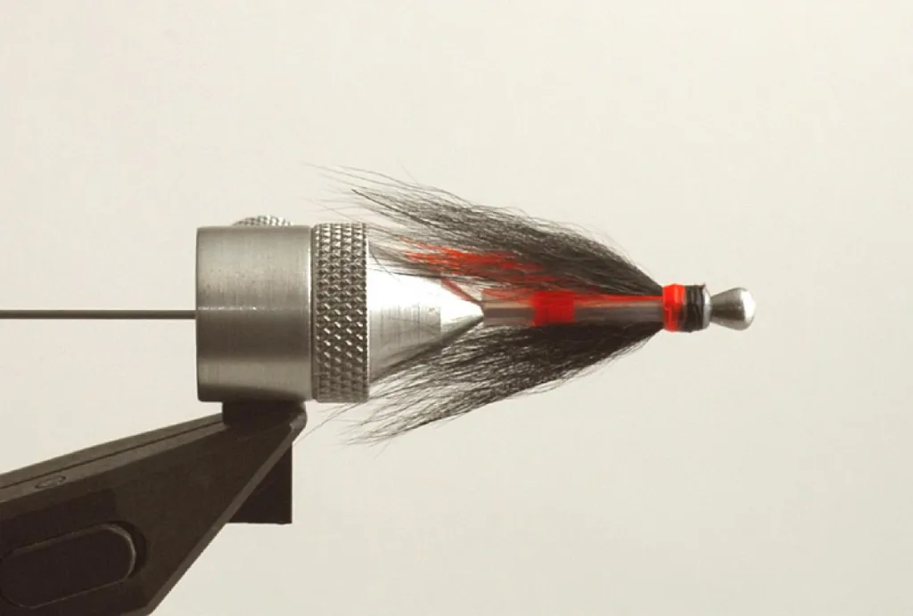 A small, light skinny fly dressed on a 3/4" plastic tube.