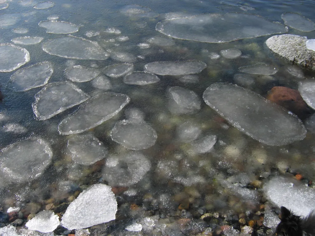 Even when the near shore water is frozen, the open water further out may be warm enough to stir some trout activity.