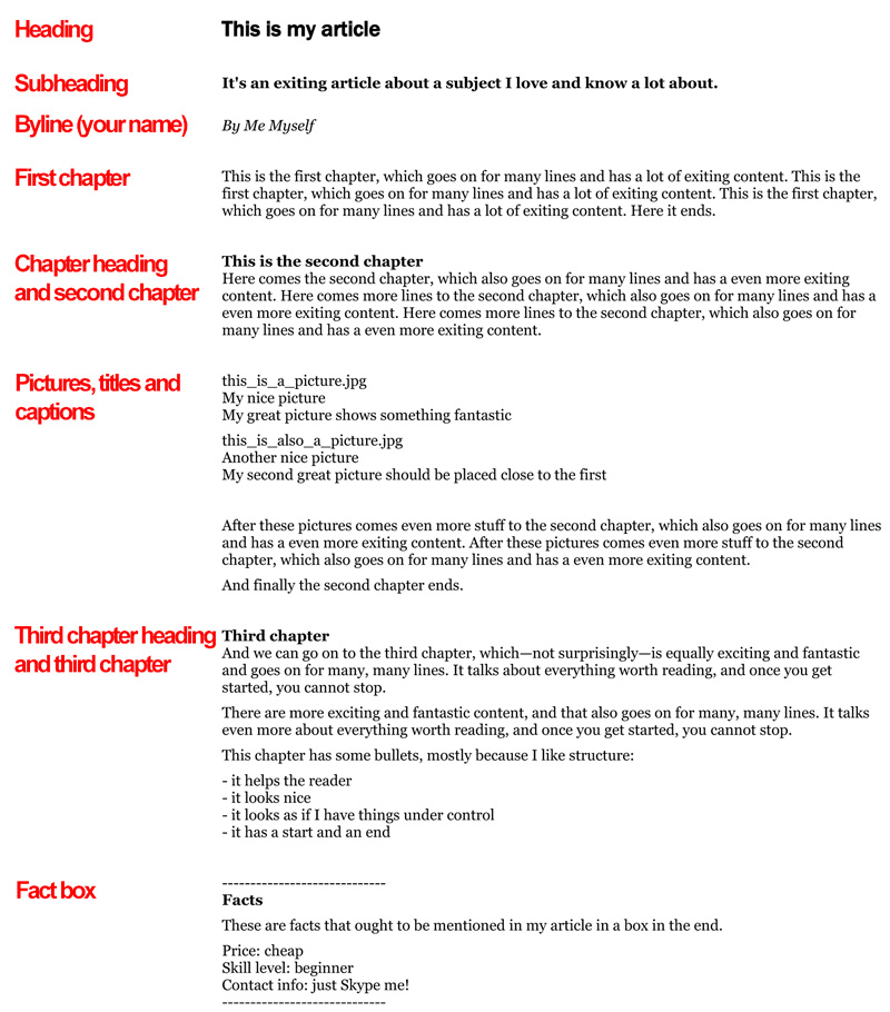 This is an example of a structure we like in a manuscript. You don't include the text in red... it's just there to explain.