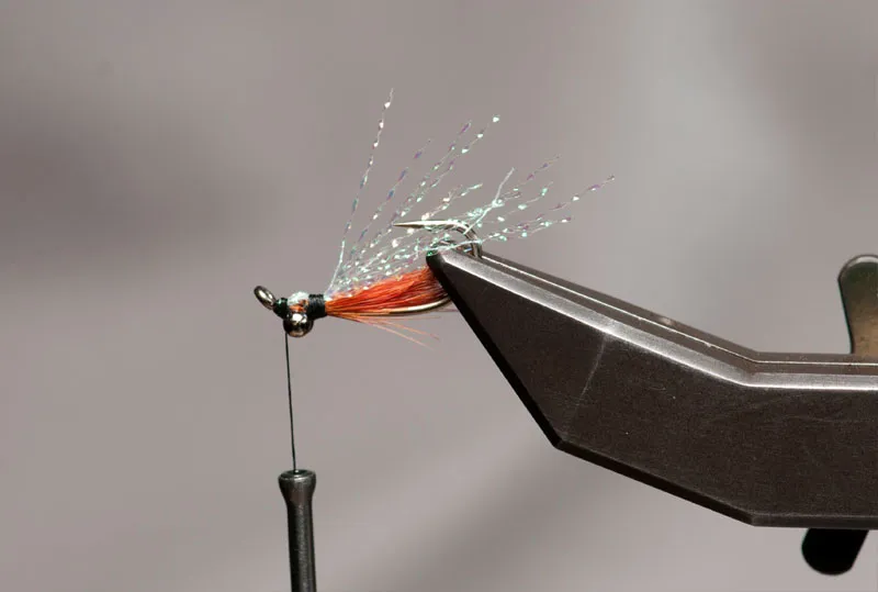 Take few turns behind the eyes to secure the flash and then wrap it under the eyes to the front, making a few finishing turns