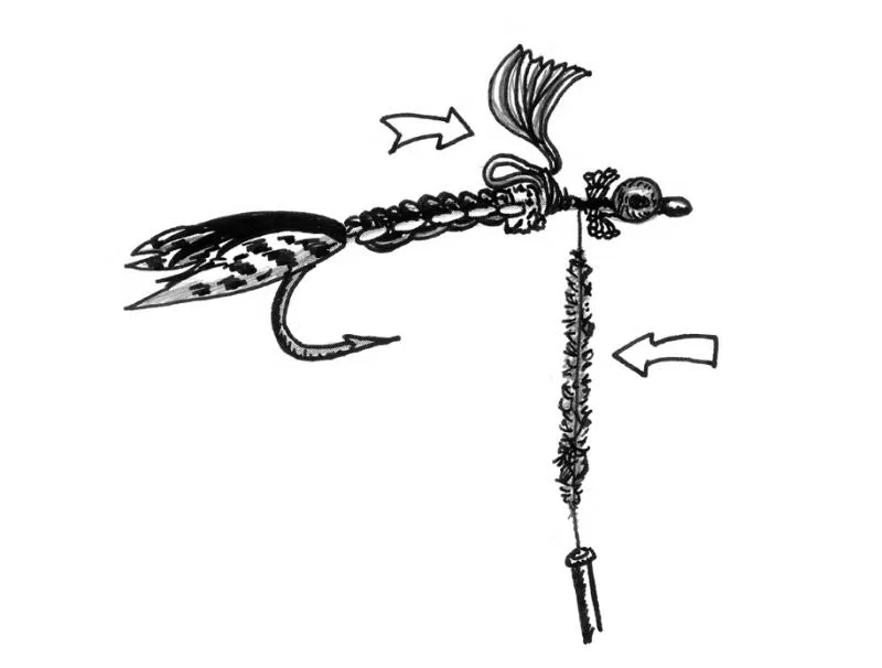 Tie the Swiss Straw over the belt making a "pocket" to give a more natural look to the wingcase.