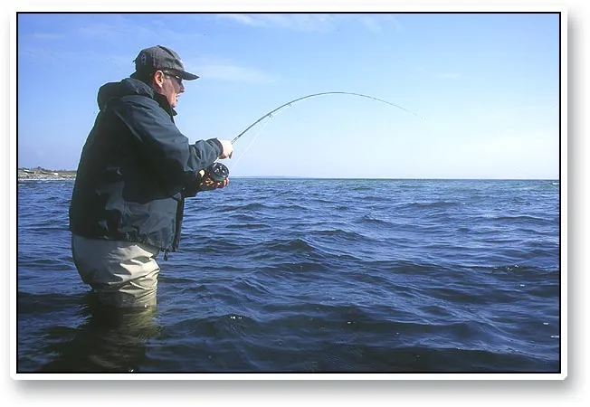 Tomaz into a good sea trout on the Danish coast. He just set the hook and started the fight.