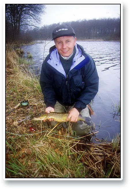 Tomaz Modic showing a small pike caught on one of Bob Kenley's Sabot flies.