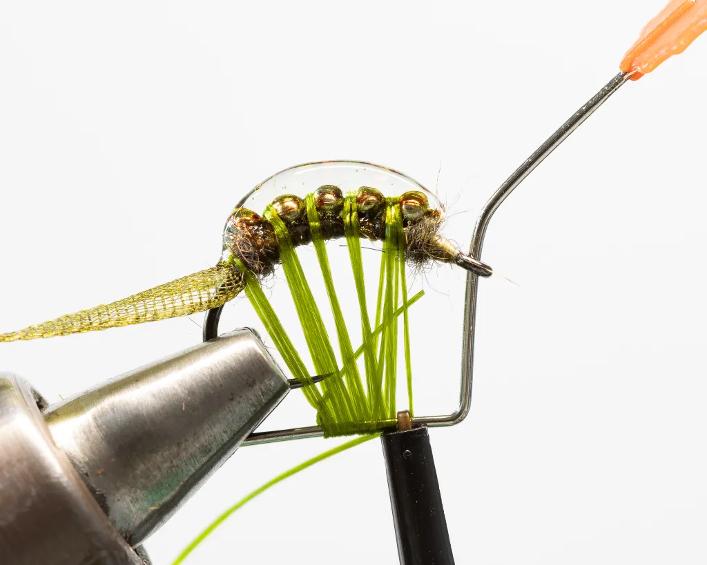 Apply UV-resin along the back and sides and cure to fix the leg loops in place.