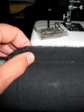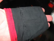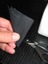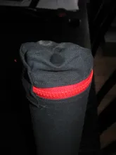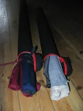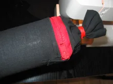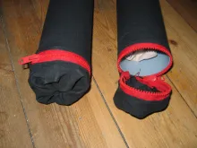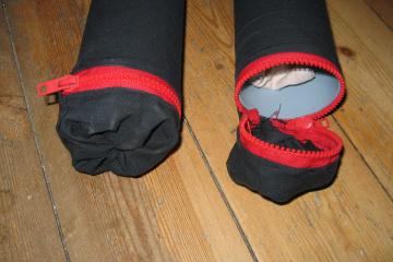 Apart from the rods you need some fabric. I used some heavy weight black Cordura type fabric that I already had. You want something that can take some wear and tear, but also something that gives a little. Not elastic as such, but with enough stretch to be able to slide on and off the tube after it has been sewn as you see in the pictures below.