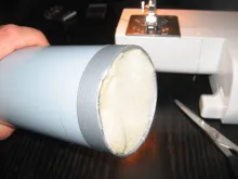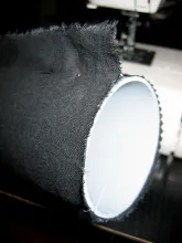 4. Pull the fabric tube back onto the pipe after putting in a foam bottom plug.