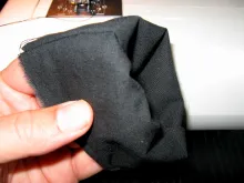 8. Cut a small square of fabric and fold in the outsides to form seams.