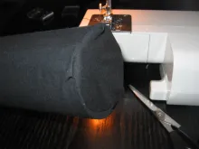 2. Make a "flange" on the tube to sew the bottom onto, fasten with pins and sew it. Trim off the excess.